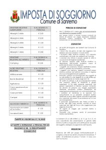Si tratta di una piccola imposta che verrà pagata dai turisti che soggiornano a Sanremo e che ha lo scopo di rendere ancora più bella e di qualità l’offerta turistica locale: infatti le entrate dell’imposta di soggiorno sono una nuova opportunità per migliorare la di promozione, l’ospitalità locale, i servizi e gli interventi sui beni culturali e ambientali, per organizzare nuovi eventi.